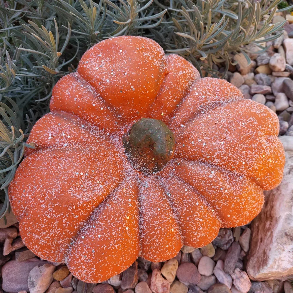 Dekorativní neobyčejná pohádková dýně. Dýně má originální tvar a je ,,pocukrovaná" s malými hvězdičkami.