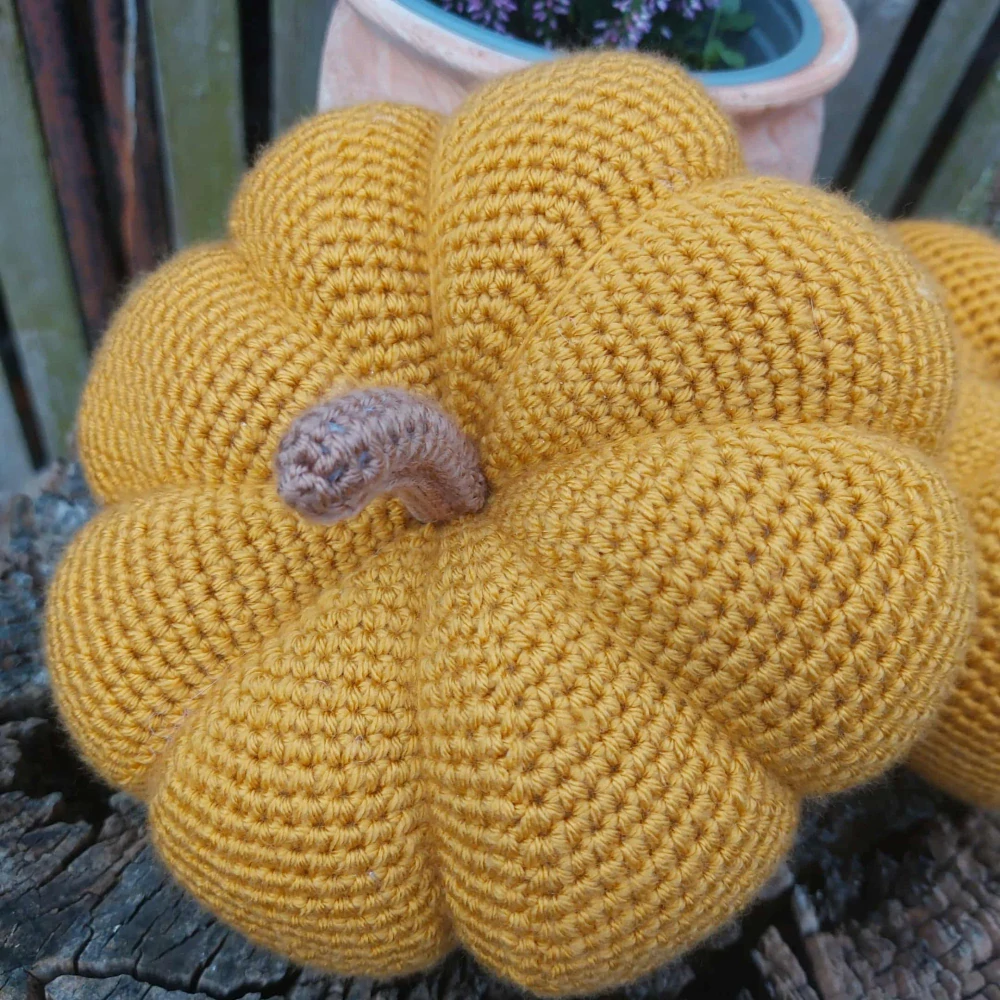 Dekorativní námi ručně vyrobená háčkovaná dýně.