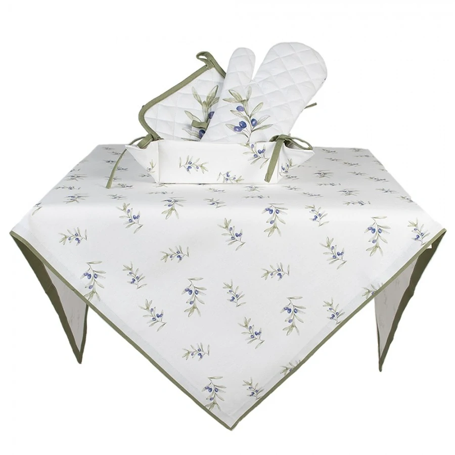 Dekorativní krásný bavlenný ubrus. Ubrus je s motivem oliv.  Materiál: bavlna  Rozměry: 100x100 cm Barva: bílá, olivová  ubrusy  celý popis