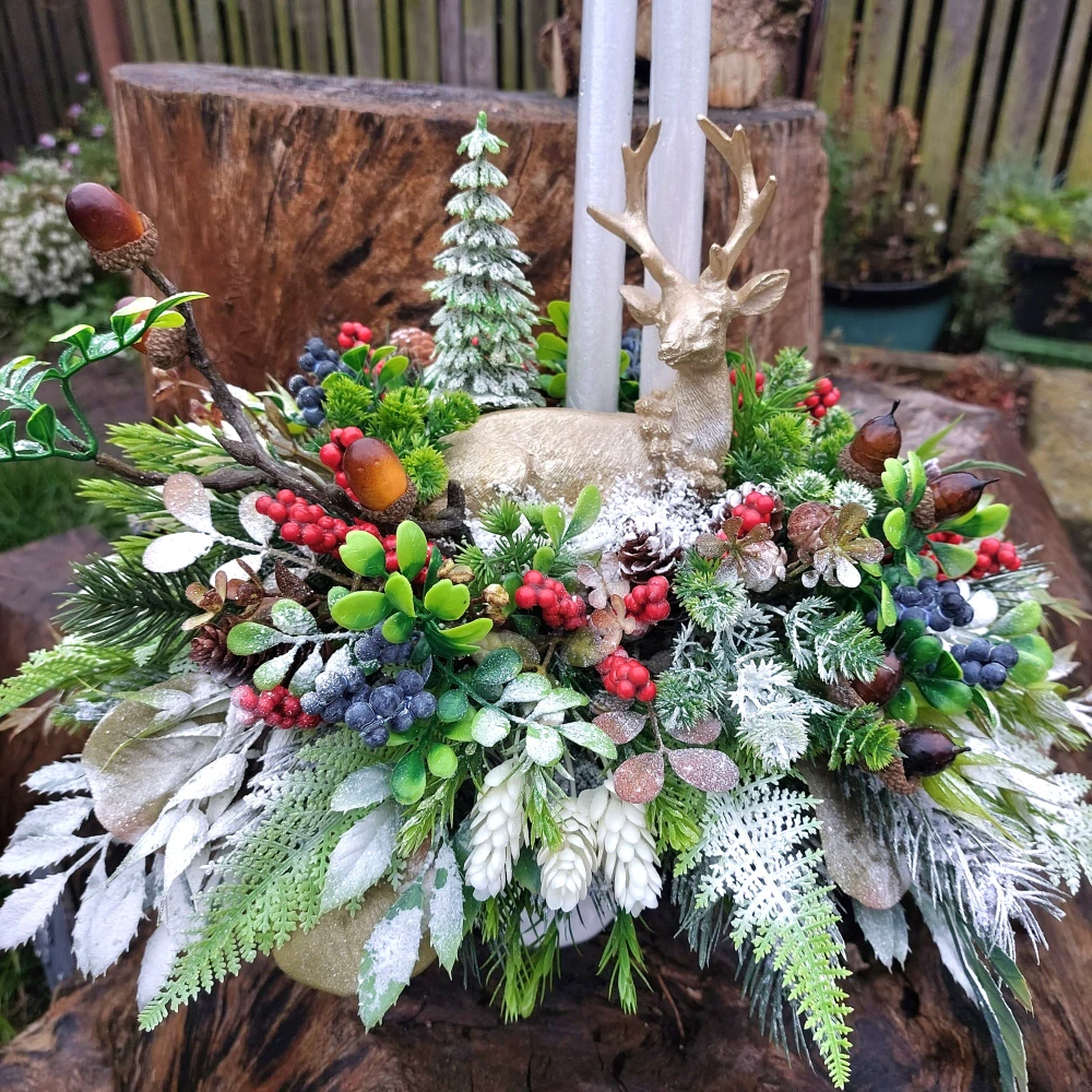 Materiál: keramický svícen, umělé jehličí, umělé dekorace
